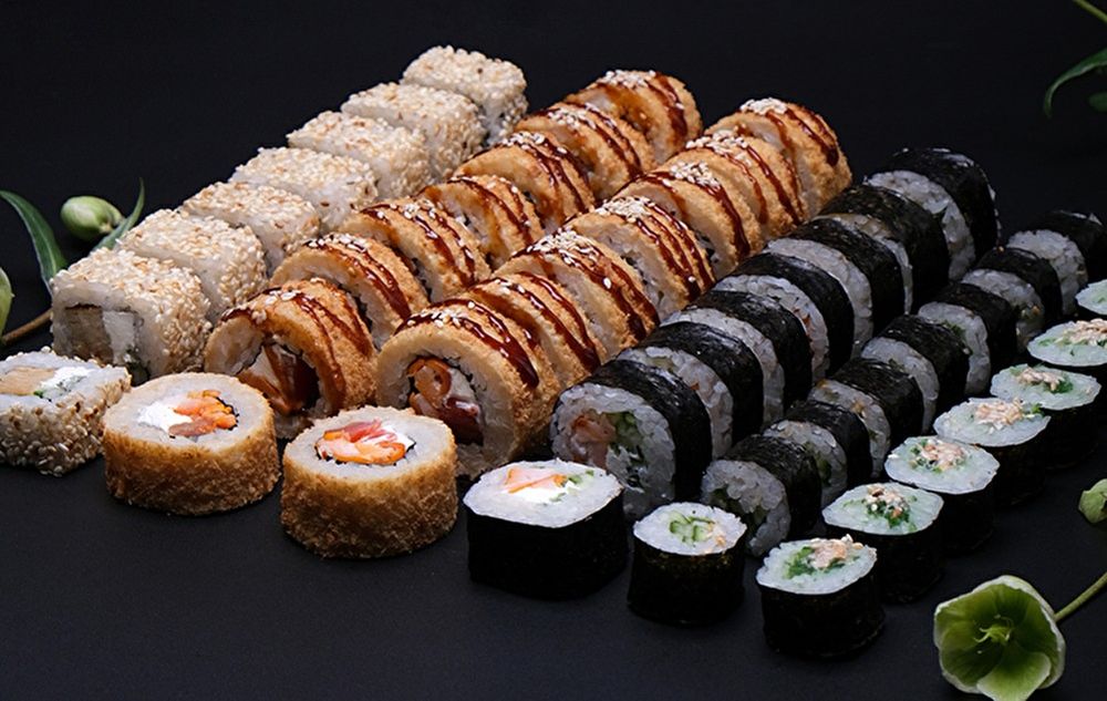 Чикен темпура х2, чикен фреш, в кунжуте, каппа маки, чука маки