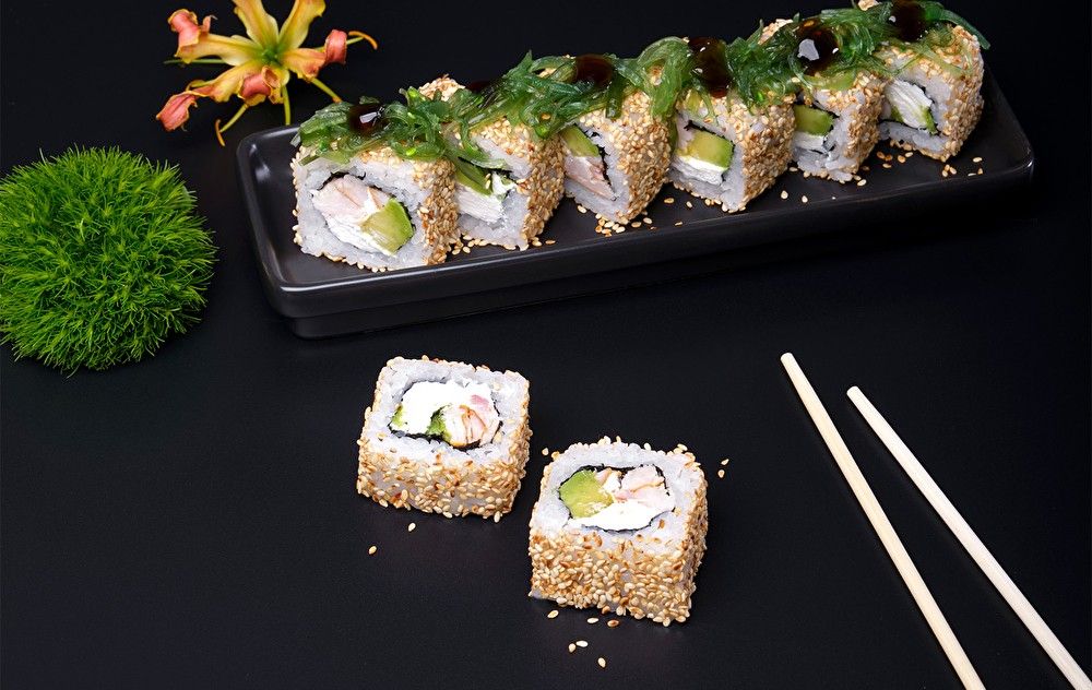 Авакадо, сыр твородный, курица копчёная чукка, кунжут