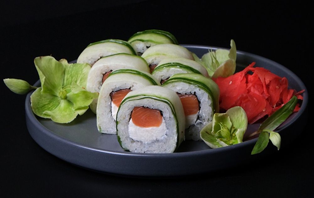 Сыр, лосось, огурец
