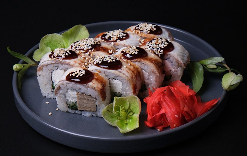 Угорь, соус, сыр, томаго, огурец