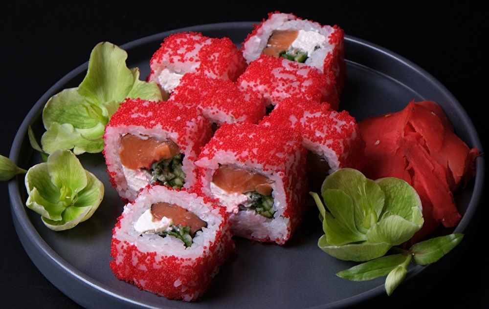Тобико, лосось, сыр, огурец