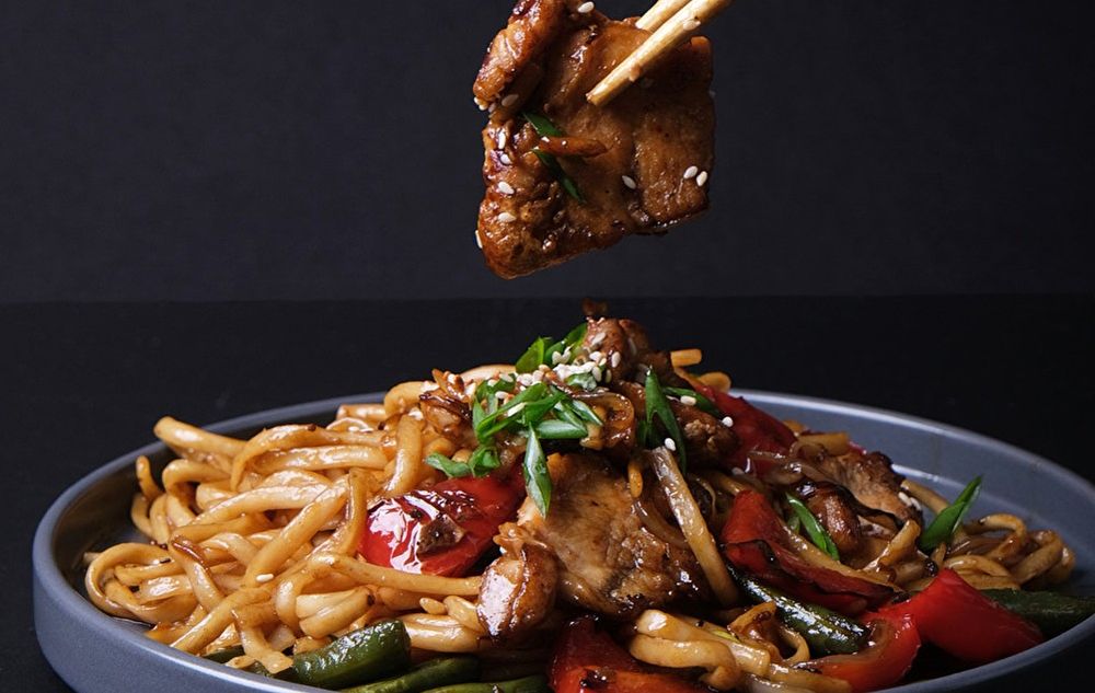 Вок с куриным филе на лапше Удон